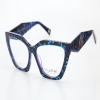 Modelo femenino de acetato con un diseño elegante y moderno, proyectando una visión fuerte de la mujer en su marca Frida Kahlo.